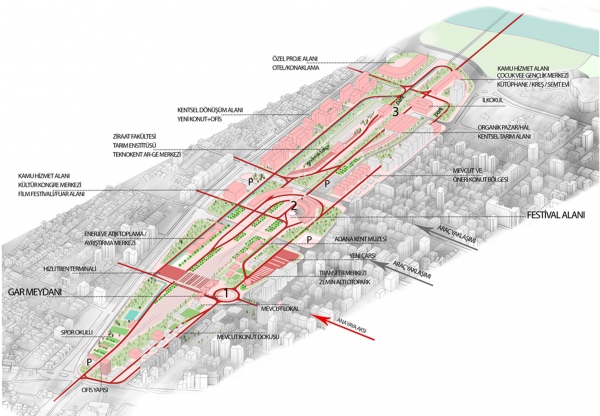 ADANA SİMGESEL ODAK ALANLARI DAVETLİ MİMARLIK VE KENTSEL TASARIM FİKİR YARIŞMASI - ADANA TREN GARI VE YAKIN ÇEVRESİ / 1.ÖDÜL